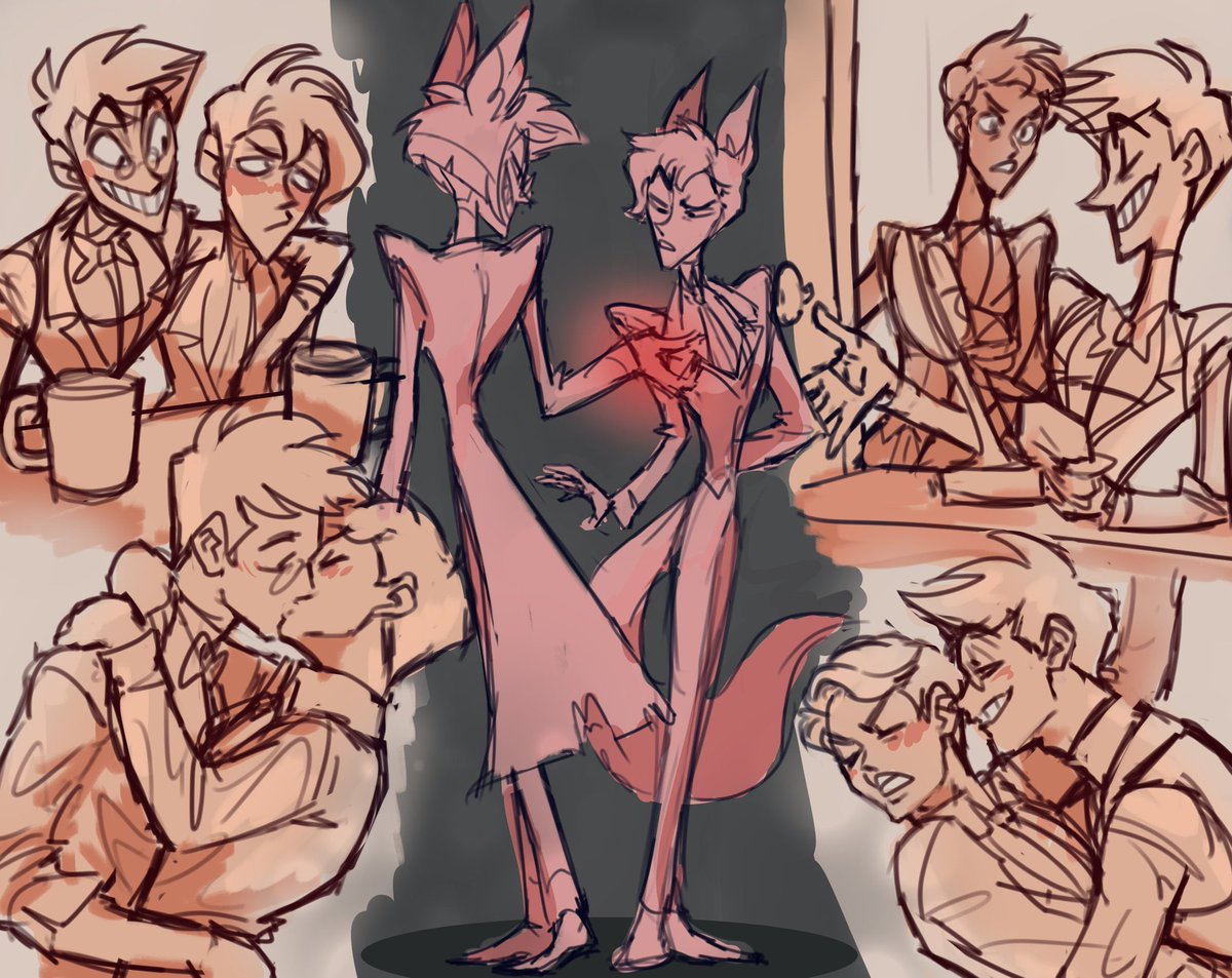 Algo bien random mientras acabo comisiones. Alastor es demasiado débil ante los encantos de charlie, sin importar en que forma este. #HazbinHotelAU #Chalastor #HazbinHotelFanart #HazbinHotelAlastor #HazbinHotelCharlie