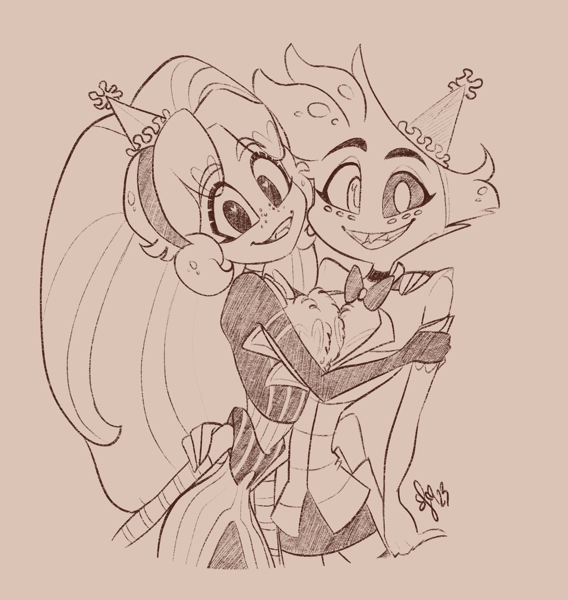 It’s a tiny bit late but here we are☺️ Birthday Twins💕 Look at these dorks🥹 #hazbinhotel #hazbinhotelfanart #hazbinhotelangeldust #hazbinhotelmolly