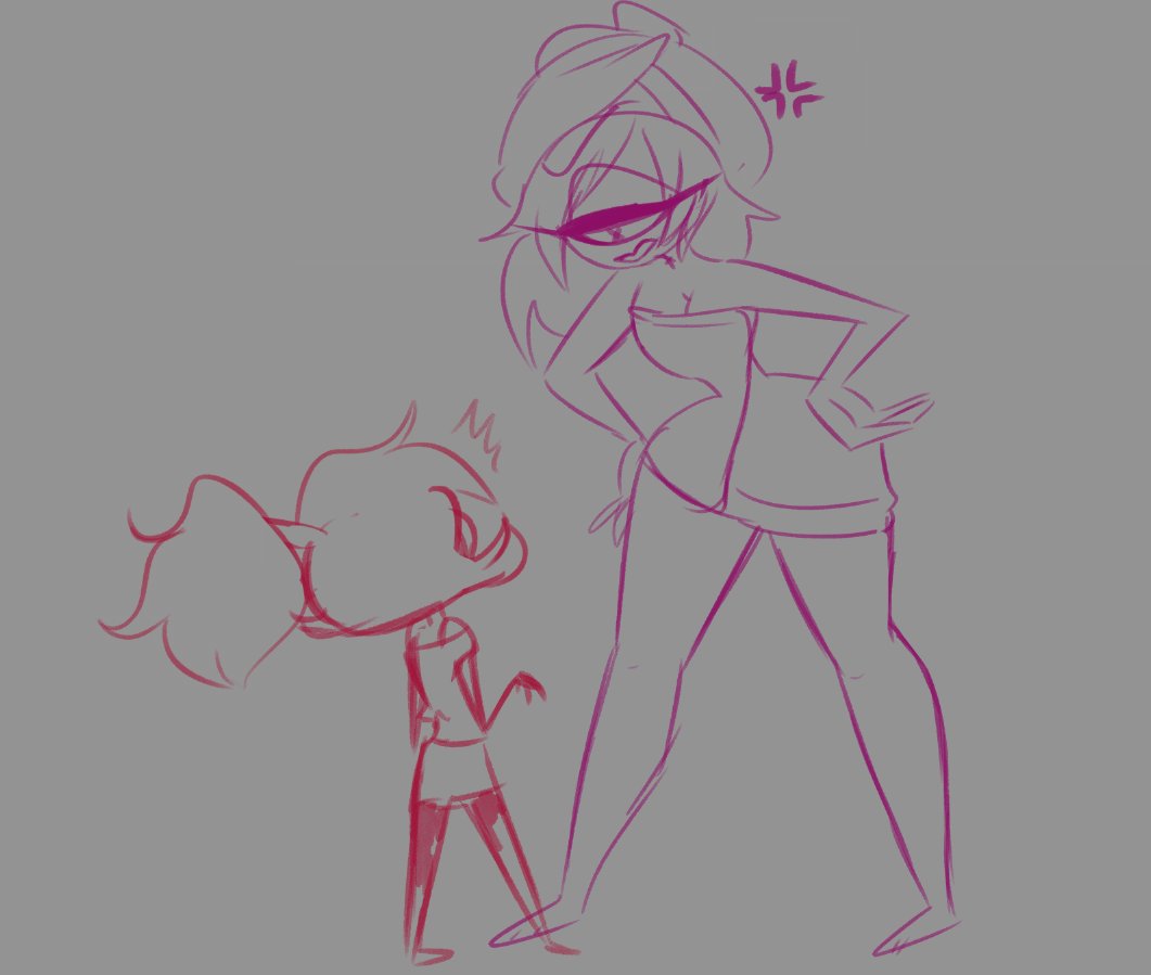 "So you're the little brat who's been running around as me! How'd you even get my clothes that small anyway?!" #hazbinhotel #hazbinhotelcherri #cherribomb #hazbinhotelnifty