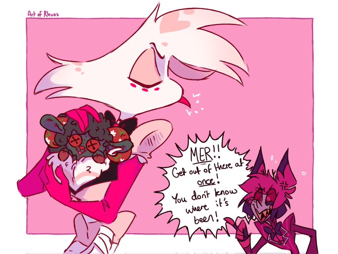 Mer = No thoughts, just floof... Silly little doodle for the glorious @Mercurial_Missy as a thank you for all she has done for me this year 🥰 #HazbinHotelFanart #HazbinHotelAngelDust #HazbinHotelAlastor #HazbinHotelOC #artofrhues