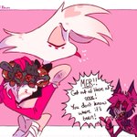 Mer: *but it warm* :3 (lulz Al just jelly he's not enjoying Angel's fluff himself sksksksksks) tysm for this doodle @ArtofRhues i love it sm 😭💕💕💕 #HazbinHotelFanart #HazbinHotelAlastor #HazbinHotelAngelDust #HazbinHotelOC