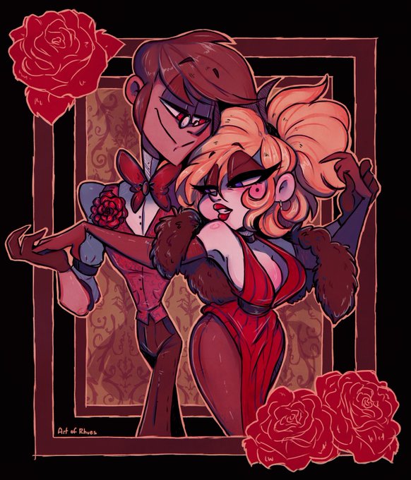 🌹A fun little piece I got to do for the glorious @LadyGValentine of their charming lady with everyone's favourite sassy deer man🌹 LadyG still needs some help with her kitty's vet bill so please go check out her gofundme! #HazbinHotelOC #HazbinHotelAlastor #RadioDoe #artofrhues