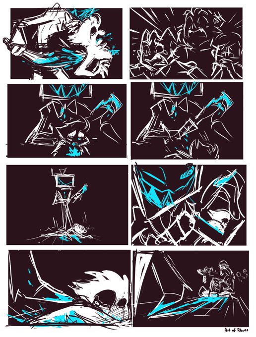 Some very scribbly thumbs @Inky_Spots and I were playing around with while trying to figure out some of the frames for their animatic 💙 Their gloriously angsty animatic is linked below 😈 #HazbinHotelFanart #HazbinHotelVox #HazbinHotelOCs #artofrhues twitter.com/Inky_Spots/sta…