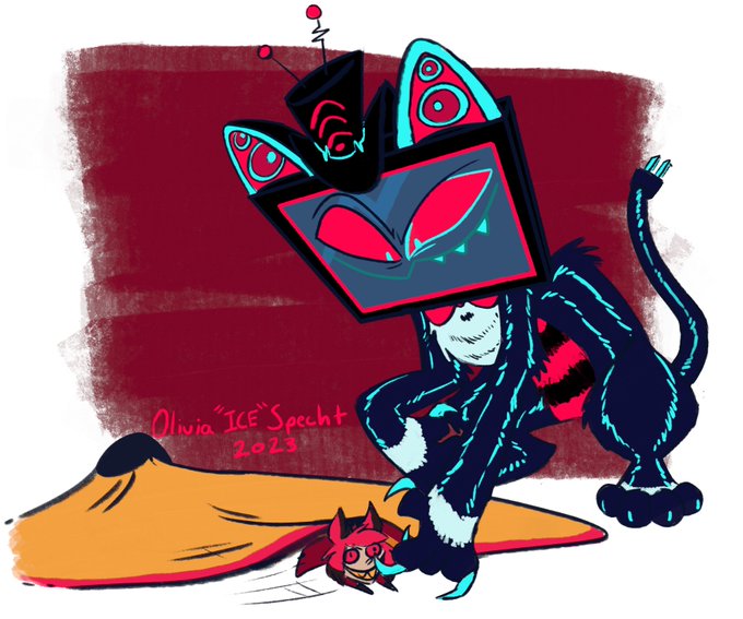 I hope I interpreted this correctly. I do agree this would be a very fun trope between the two of them xD #hazbinhotelvox #hazbinhotelalastor #HazbinHotelFanart [Snuggie/Vuggie version available in thread] twitter.com/MallowtonMouse…