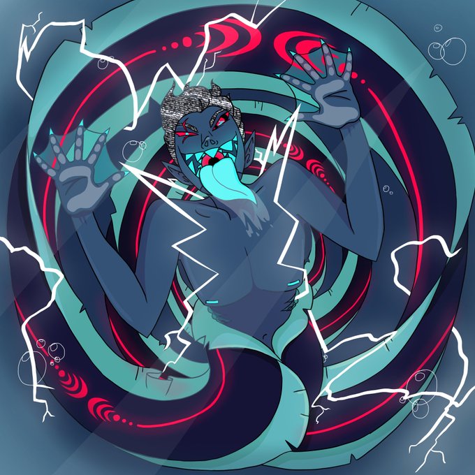 "When you're diving at night, and your feet feel the bite, that's a morayyy~" An eel Vox for mermay based off of @lena_vickx’s human Vox design (and electric/moray eels) #Mermay #HazbinHotel #HazbinHotelVox #HazbinHotelFanart