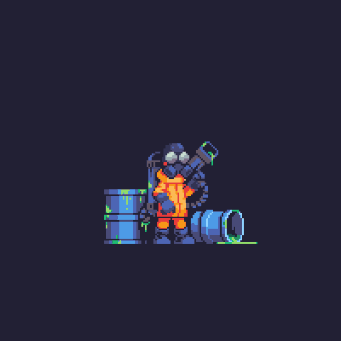 Toxic Wasteland ahead☠ Canvas Size: 128x128 @Pixel_Dailies #HazmatSuit #pixel_dailies #pixelart | #aseprite | #ドット絵 | #픽셀아트 | #dotpict