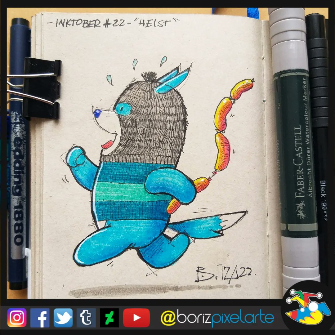 Day 22: Heist There's a theme of animal criminals recently; this robber is on the run! #inktober #inktober2022 #inktoberday22 #drawing #art #artwork #design #sketch #traditional #pencil #draw #drawingaday #illustration #inktoberday22heist #heist #anthro #furry #furryart #raccoon
