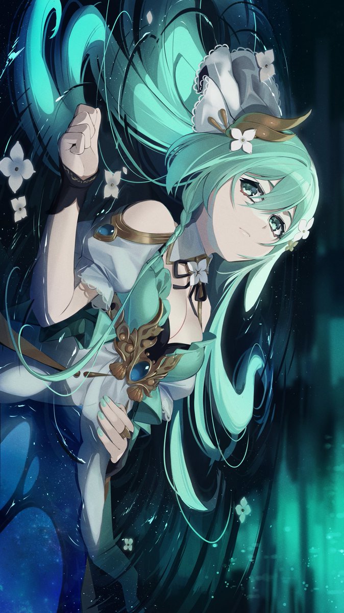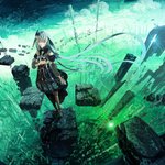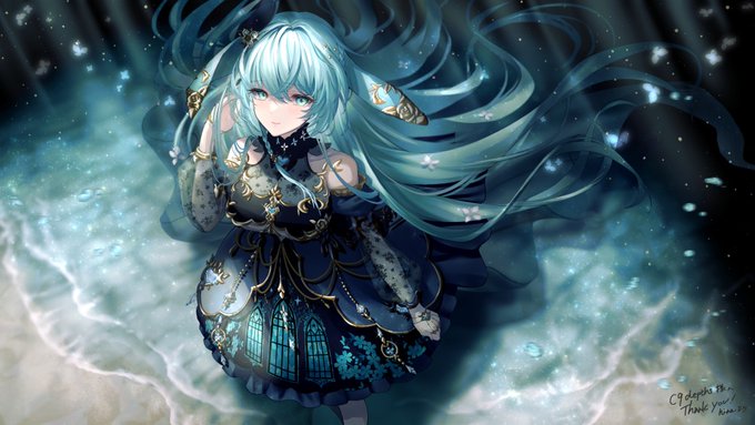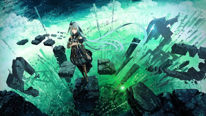 C9 depths⚓様のイラスト、依頼で描かせて頂きました。 浮遊するポッピングブロックと深みのある緑を基調とした世界、神秘的な衣装と雰囲気を醸し出すキャラクターから、ぜひ壮大なストーリーを感じとって頂ければと思います! #heartdepths