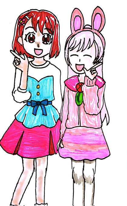 ちゆちゃんとキュアマリン一緒にポーズ~💙 #precure #ハトプリ #ヒープリ #heartcatchprecure #healingoodprecure #落書き #イラスト #プリキュア好きさんと繋がりたい