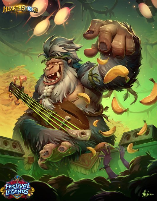 Il Festival delle Leggende monterà il palco nella taverna di Hearthstone tra poco e qui vi faccio vedere una delle carte che ho disegnato per questa fantastica nuova espansione! Re Mukla è un personaggio importante in WoW ed è stato un vero piacere poterlo disegnare! #Hearthstone