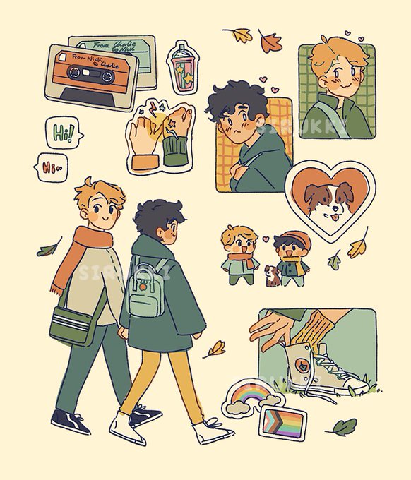 Sweet Puppy Boys 🐶&🐶 多分スプリング家の3きょうだいは猫ちゃん🐱🐱🐱 ハートストッパーとソリティア読んでからどうしても描きたかった2人やっと描けたぜ〜〜〜!!🥹 #Heartstopperfanart #Solitairefanart #NickNelson #MichaelHolden #AliceOseman