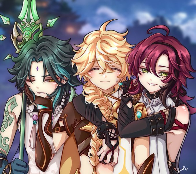 Traveler is so popular 😆💖 #Genshinlmpact #genshinimpactfanart #Xiao #Aether #Heizou #XiaoAether #Heither #平空 #魈空