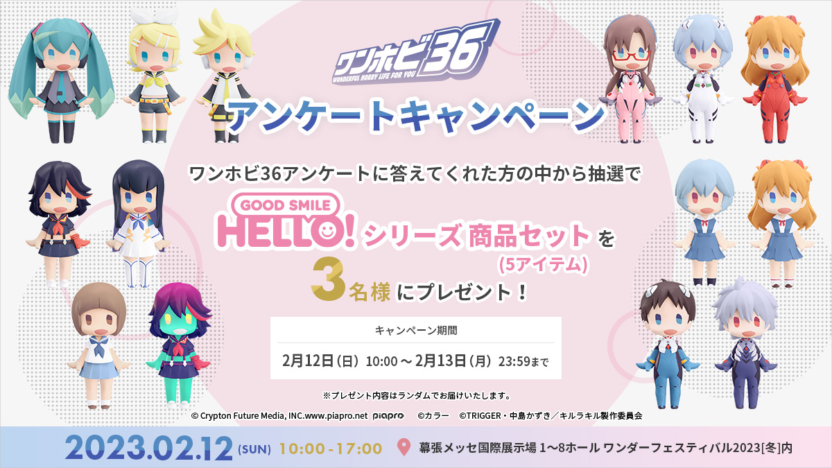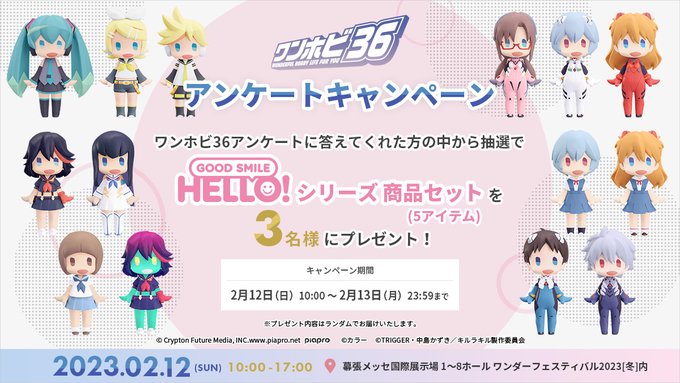 / 📢 #ワンホビ36 更新情報 \ イベント当日公開する #ワンホビ36 アンケートへご回答頂いた方の中から抽選で3名様に、#hellogoodsmile シリーズ商品セット(5アイテム)をプレゼント🎁 詳しくはこちら▶goodsmile.link/3jYmV1h #WF2023W #goodsmile