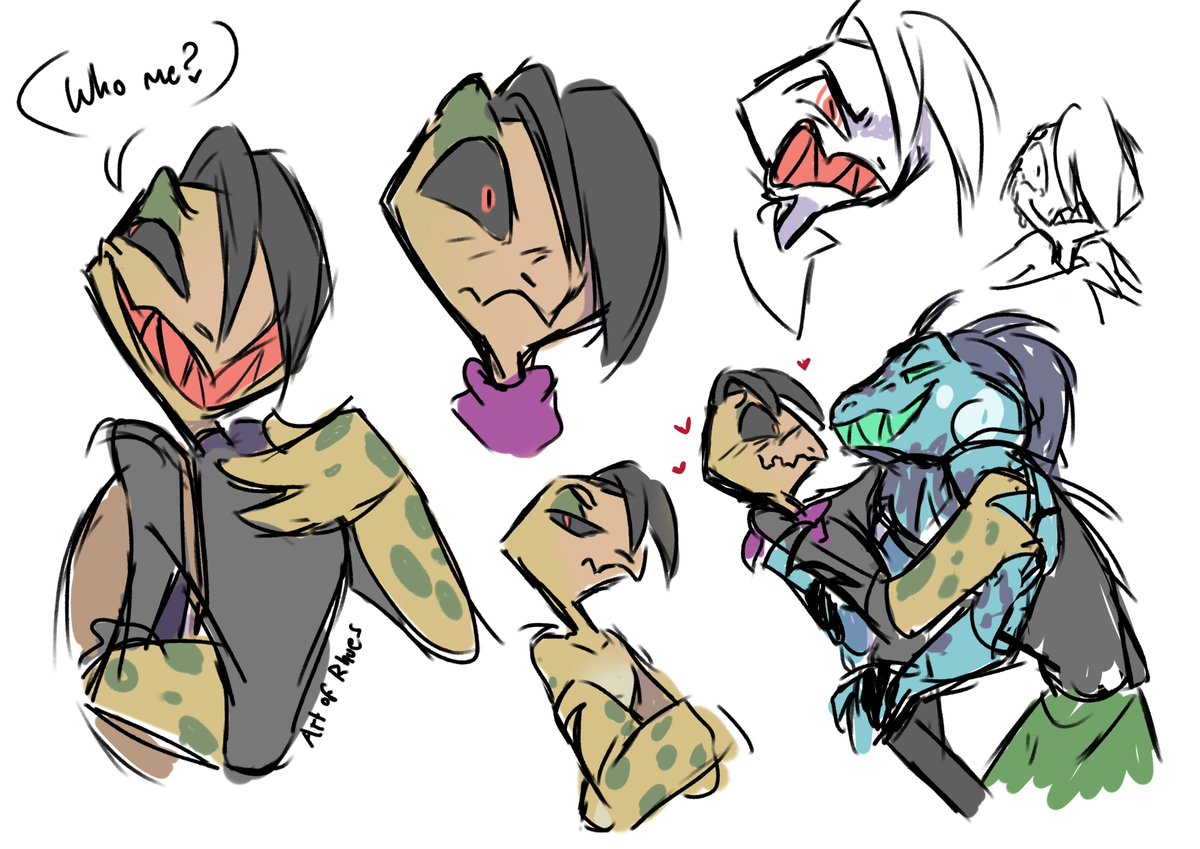 So I noticed I may have a type when I design Hazbin sonas... I can’t help it though! I have a fondness for bitey assholes! #HazbinHotelFanart #HazbinHotelOC #Hellsona #artofrhues