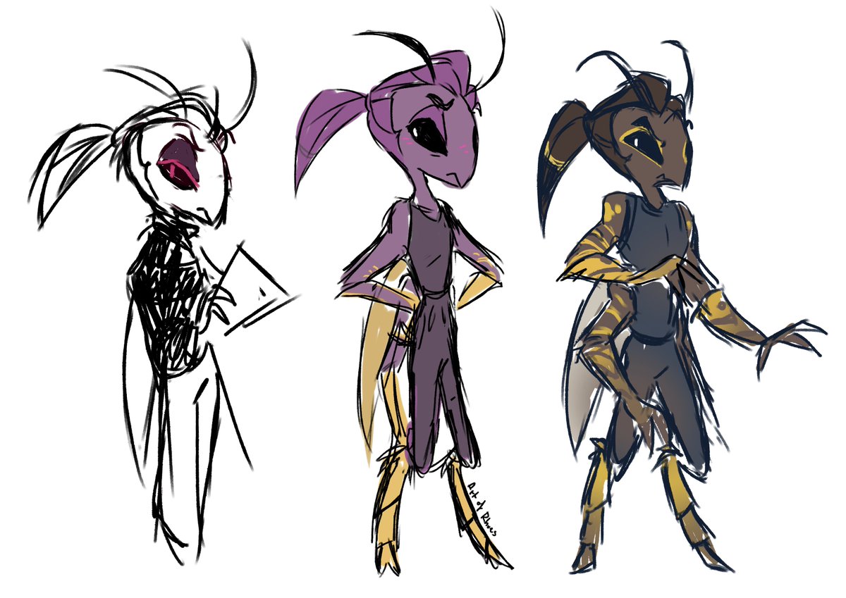 More bitey moth children doodles with @Inky_Spots 🦋 Ink drew in green and I drew in purple... #HazbinHotelFanart #HazbinHotelOC #hellsona #artofrhues