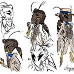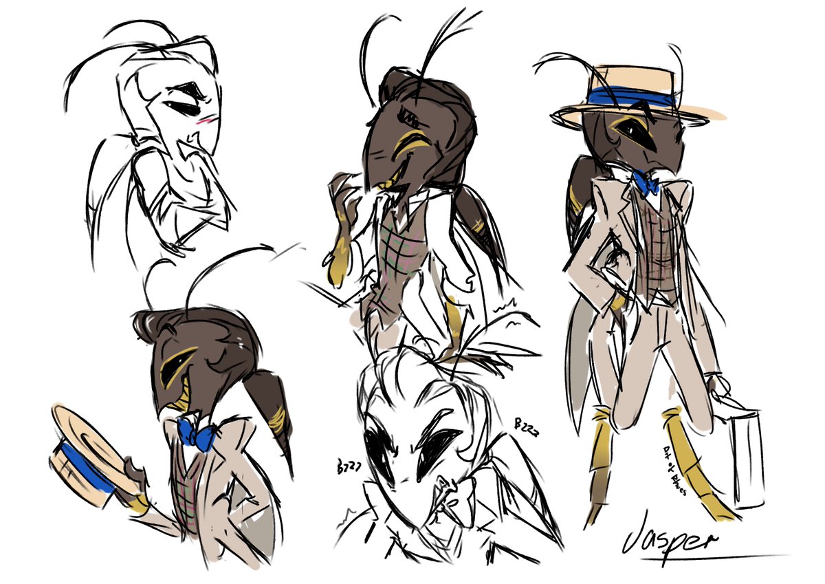 Initial concepts for a hazbin sona... His name is Jasper and was a greasy conman that fell into a wasp nest while hiding from an angry mob and was stung to death... Still not 100% on this stinky boi but it's getting there... #HazbinHotelFanart #hellsona #HazbinHotelOC #artofrhues