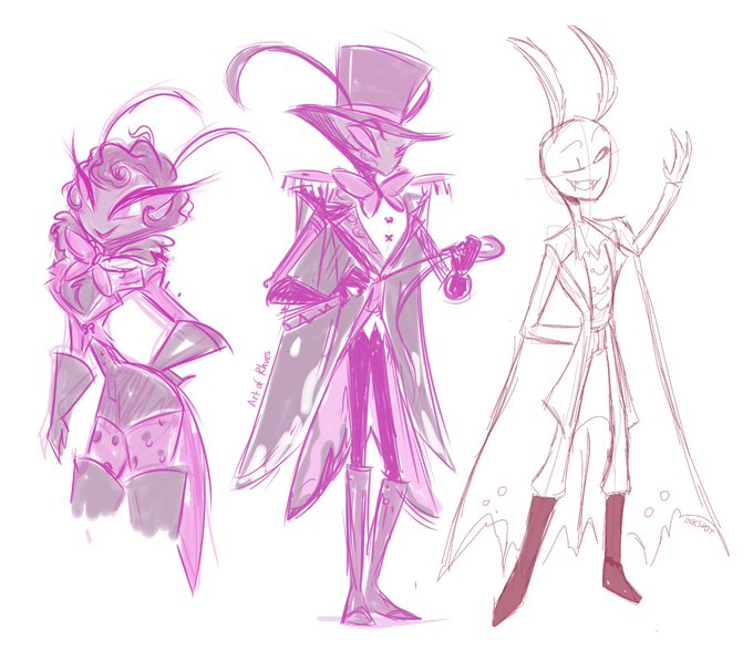 Some rough scribble continuations of the characters I drew before... Still haven’t decided on their colour scheme, gender or anything yet but I just think they’re neat... #HazbinHotelfanart #HazbinHotelOC #Hellsona #artofrhues