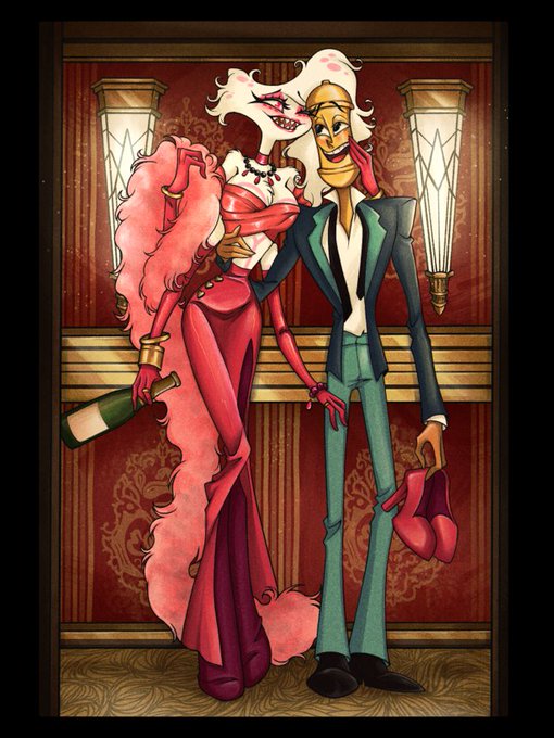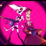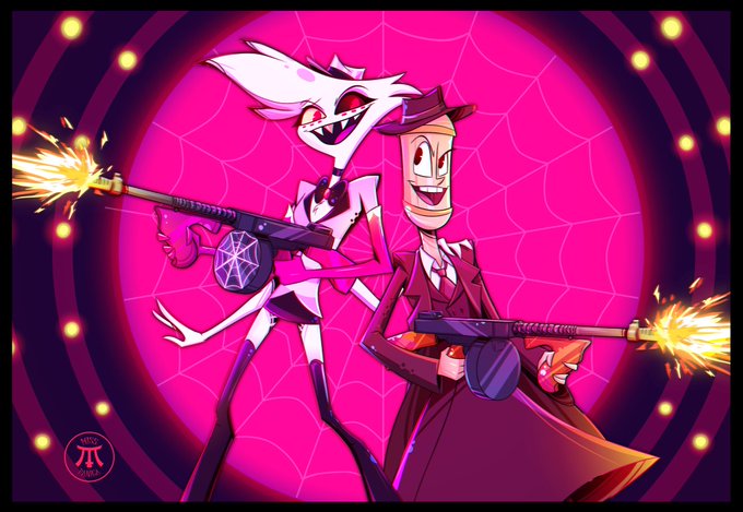 A commision from the lovely @misspanica1 ! Loud and Angel do occasionally grt up to mafia antics together and well, it's always a blast with these 2 lovebirds. #HazbinHotel #HazbinHotelOC #Hellsona #Loudmouth #LoudDust #AngelDust #HazbinHotelAngelDust #HazbinHotelFanart