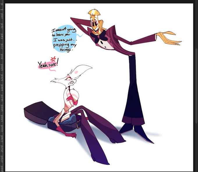 A repoooooost of one of my favorite commisions with @HhbSoul of the time poor Angel thought I was leaving him behind #HazbinHotel #HazbinHotelOC #Hellsona #Loudmouth #LoudDust #AngelDust #HazbinHotelAngelDust #hazbinhotelfanart
