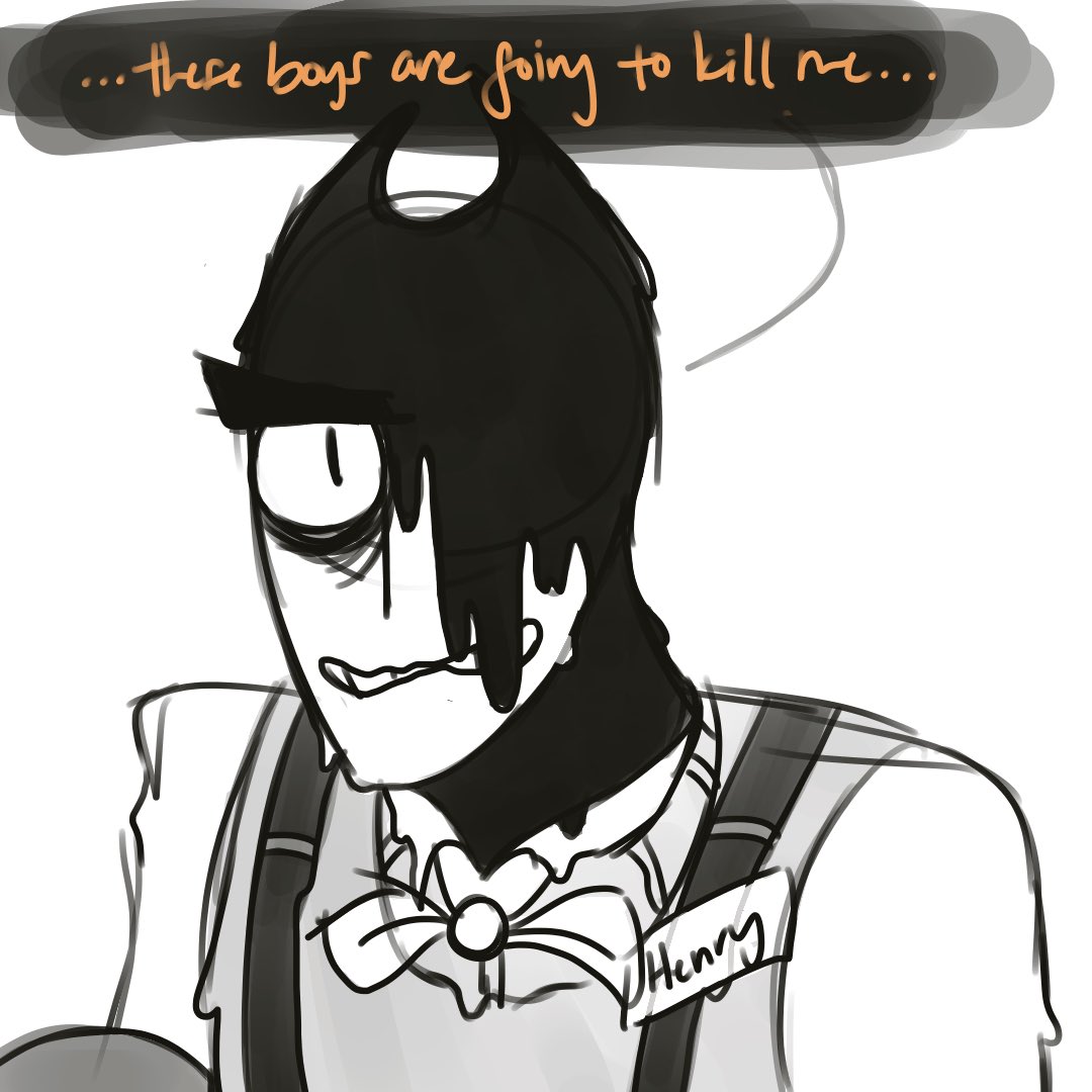 @Doberart drew their version of Henry with canon Henry so I wanted to draw it too, but funny :D #bendyandthedarkrevival #batdr #bendyandtheinkmachine #batim #batimfanart #batdrfanart #aliceangel #boristhewolf #henrystein #doodles #doodledump #illustration #art #drawings