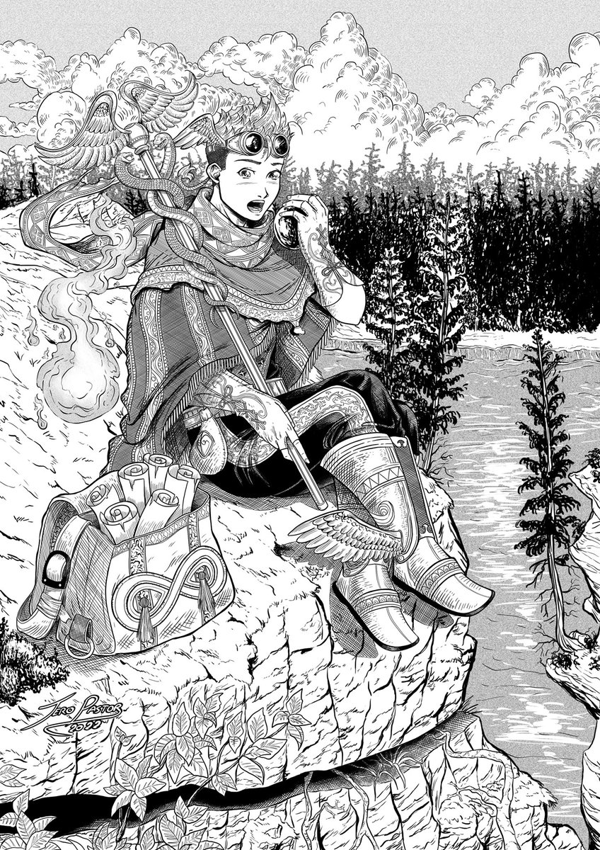 De camino al Hades, Hermes se toma un pequeño descanso. Próximamente la versión a color!!! #ilustration #drawing #digitalart #greekmythology #hermes #hermesgreekgod