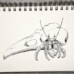 #inktober day 9! #crabby I went with a hermit crab, because I can relate. #ink #inkdrawing #inktober2022 #crab #hermitcrab #skull #birdskull #raven #ravenskull #macabre #skullshell #shell #traditionalart #copic #copicmarkers