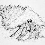 Inktober 2022 no.10 - “Crabby” 🦀 A little love for my favourite crustacean. Very homey fella. #inktober #inktober2022 #ink #InktoberCrabby #inktoberday10 #artistsontwitter #fanart #penandink #crab #HermitCrab #seacore