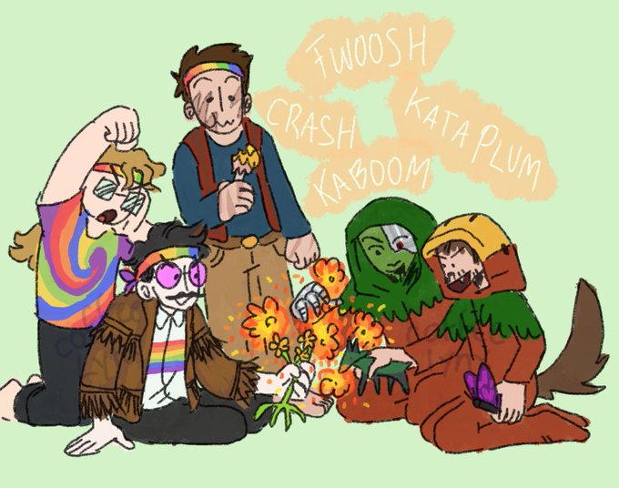 haven't had a chance to watch doc's video yet, but i have a feeling it doesnt include a semi-amicable handshake between the buttercups and the perimeter. #Hermitcraftfanart #docm77fanart #gtwscarfanart #rendogfanart #grianfanart #mumbojumbofanart