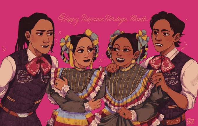 little promo tweet for #HispanicHeritageMonth <3 im bee! im mexican american (hi fellow jaliscienses) & i draw!! heres some of my faves from this year!! also im taking commissions atm (info in replies)