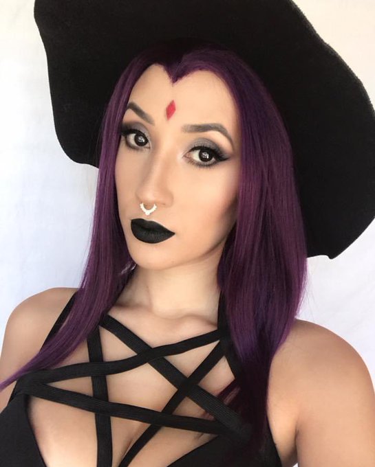 5 years ago today I did a makeup test for my casual witchy Raven that I shot at in a cemetery 𖤐🖤🔮 Wig: @ArdaWigs Pentagram harness: @V_bencomo #hispanicheritagemonth #latinxheritagemonth #raven #cosplay #witch