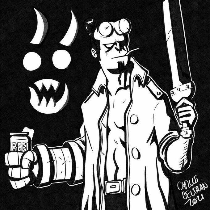 Don intentos de hacer a Hellboy y en los dos se me olvidó que tiene cola :(. . . . . #inktober #inktober2021 #hellboy #hell #comics #mikemignola #demons #dark #beer #blackandwhite #blancoynegro #drawing #dibujo #historietas #monsters instagr.am/p/CVd33-ZLaFf/