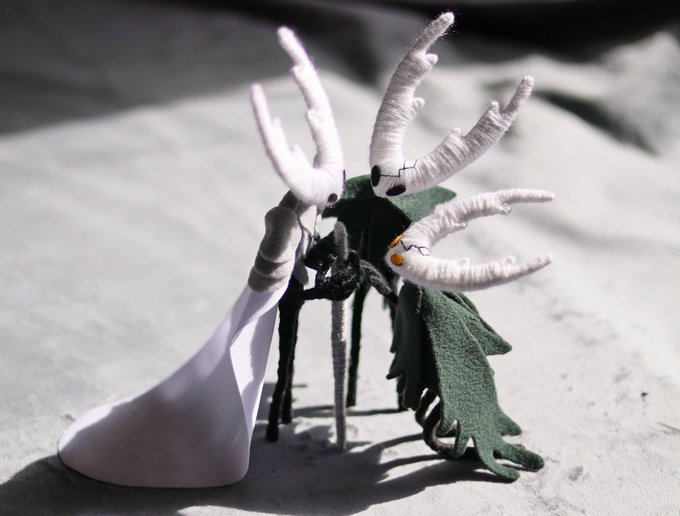 Mini Lost Kin has also joined the babis! 💙🤍 They can sit on your hand and love to explore the outside world - Found Kin 😁🤍💙 They are available in our Etsy shop 😊💙 #hollowknight #hollowknightfanart #hollowknightart #hkfanart #brokenvessel