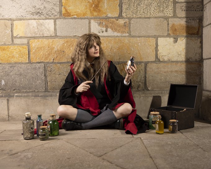 Wishing you all a magical Sunday! #Hermione is practicing her potions again. What do you think she is brewing? #hermionegranger #hermionecosplay #hermionegrangercosplay #hogwarts #hogwartsschoolofwitchcraftandwizardry #gryffindor #thecleverestwitch #witch #harrypotter #cosplay