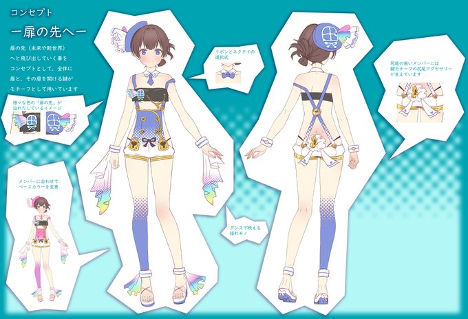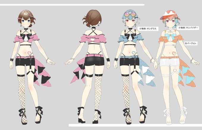 #hololive_swimsuit に応募した衣装デザインです!ショーパンで3Dにしやすくかつ動きが出て、今までの衣装と違う形にすることで画面映えを狙いました!~pixiv.net/artworks/10532…