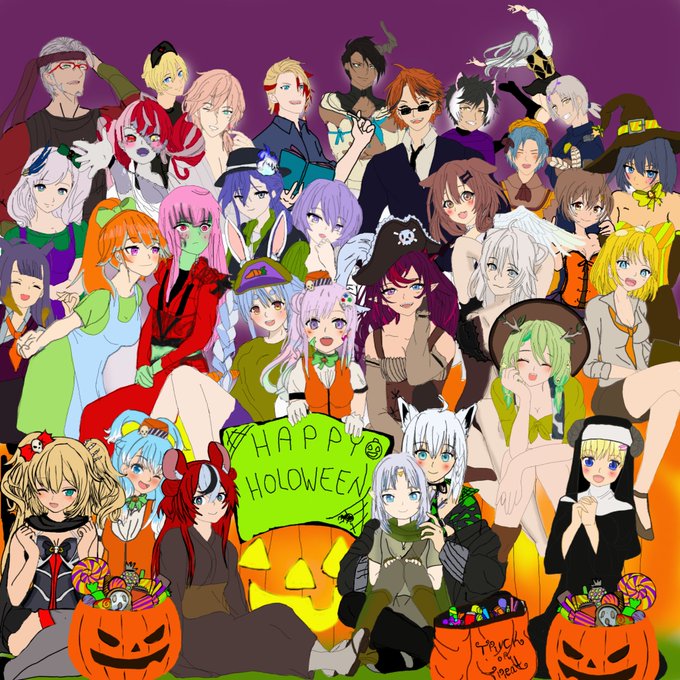 HOLOCTOBER 31: #Hololive #HololiveEN #HololiveJP #Holostars Watame: #つのまきあーと Temma: #岸メン Mumei: #drawMEI Vesper: #VespART Calli: #callillust Iofi: #ioarts Kobo: #Aeruseni Rikka: #りつあーと Arusan: #アランの画廊 Moona: #HoshinovArt Kroni: #kronillust Happy Halloween!