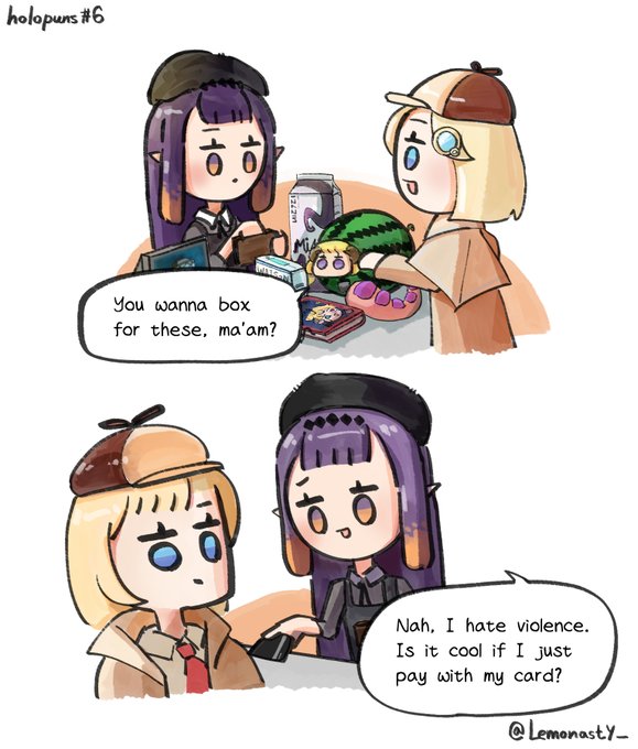 【Holopuns#10】 Sorry Mumei... - And BIG thanks to @PunHubOnline Give me permission to use their puns for my artwork - Thanks for everyone's follow💙 #holopuns #kronillust #クロニーラ #kroniijokes #drawMEI #memeMEI