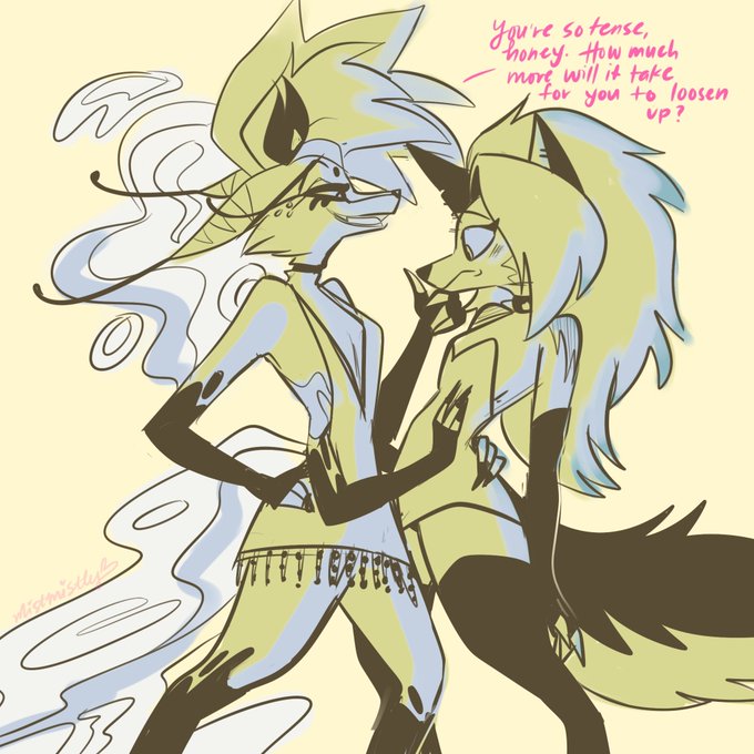 Touch up of Aless'first time going to one of🐝Queen Bee's🐝 parties! Although he's surprised by her suggestion, and to this day is still processing what had happened. #honeymoonHB #HelluvaBossBeelzebub #HelluvaBossQueenBee #HelluvaBossBee #HelluvaBossFanart #HelluvaBoss #impsona