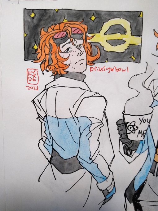 The mug says "You Matter!". I like her pins. I'm not sure about the red glasses tho. I like them but idk if they fit her... #ApexLegends #ApexLegendsFanart #HorizonApexLegends #traditionalart