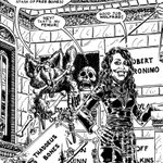#Drawlloween #Inktober Night 8: Mind Your Manors featuring @marlenamidnite, Wolfred and Thaddeous Bones (at least parts of him) from the @midnitemauso. Guest appearance from #DrFearless of the #FearlessManor @Dastmalchian #halloween #horrorhost #drawlloween2022 #inktober2022