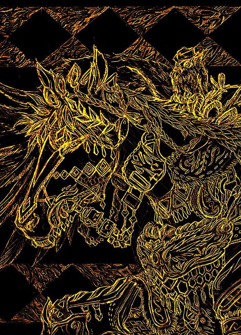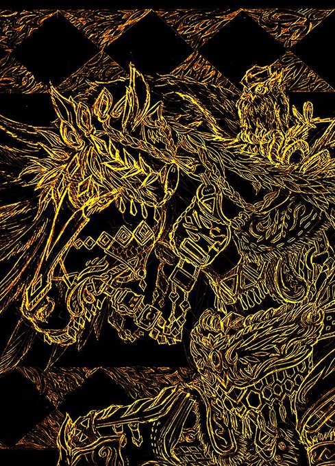 アクリル板をカッターナイフで削って描く #スクラッチアート 下描きなしの一発描き 馬/ユニコーン #horselovers #horse ツリー元の絵のアップ #絵描き人 #冬の創作クラスタフォロー祭り #絵描きさんと繋がりたい #artoftheday #ArtistOnTwitter