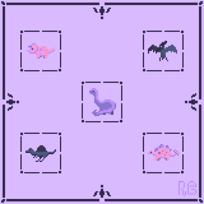 A #set of five tiny #dinosaurs (each 25x25). #pixelart ・ #ドット絵 ・ #pixel_dailies ・ #hortensiadpalette ・@pixel_dailies