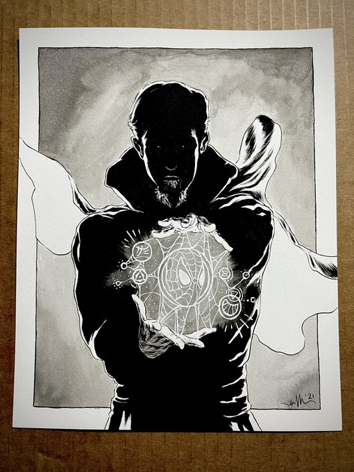 Day 7 - Prestidigitation - Ink on 8x10in Multimedia Board - PM if Interested #art #ink #inktober #inktober2021 #prestidigitation #drstrange #marvel #spiderman #spiderverse #multiverse #comics #movies #fanart #wizard #houstonartists #epikmoore @inktober