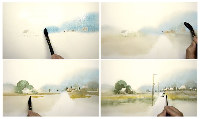 滲みとぼかしで描く心象風景 描き方 How to paint youtu.be/4t-zByr9KdI #水彩メイキング #making #howtopaint #watercolor #水彩画