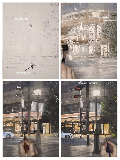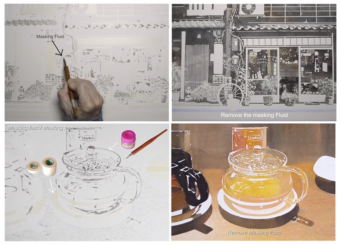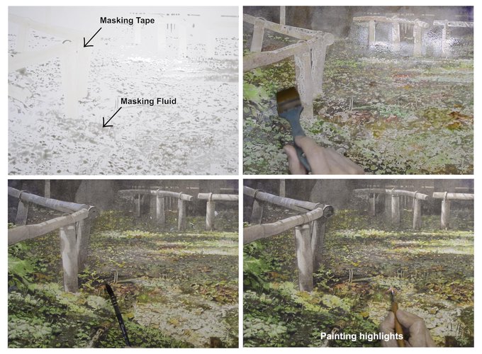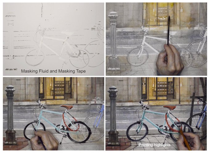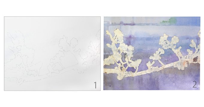 水彩画にマスキングインクとテープを使った効果。描き方 How to paint youtu.be/LJeJ-qN4IVo #水彩メイキング #making #howtopaint #watercolor #水彩画