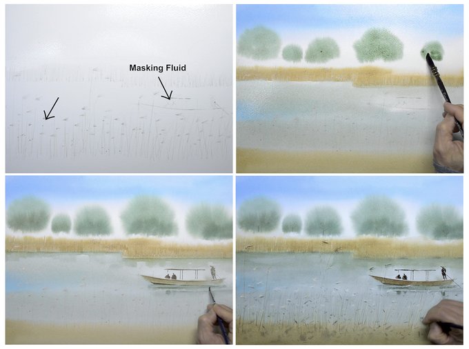 マスキングを効果的に使う水彩画 描き方 How to paint youtu.be/xOHLAAY96Uo #水彩メイキング #making #howtopaint #watercolor #水彩画