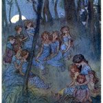 Illustration from the book :'The Merry Wives of Windsor' by William Shakespeare Artist : Hugh Thomson, 1910 #hughthomson #illustration #bookillustration #fairies