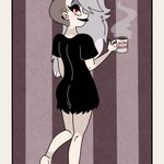 A pinup commission for @DeviledStew of Loona from "Helluva Boss" in her human disguise enjoying her morning coffee 😈🐺☕️😉 #Loona #HumanLoona #HelluvaBoss #cartooncrush #coffee #gothgirl #morningvibes #sleepshirt #fanart #commissionart