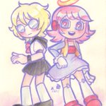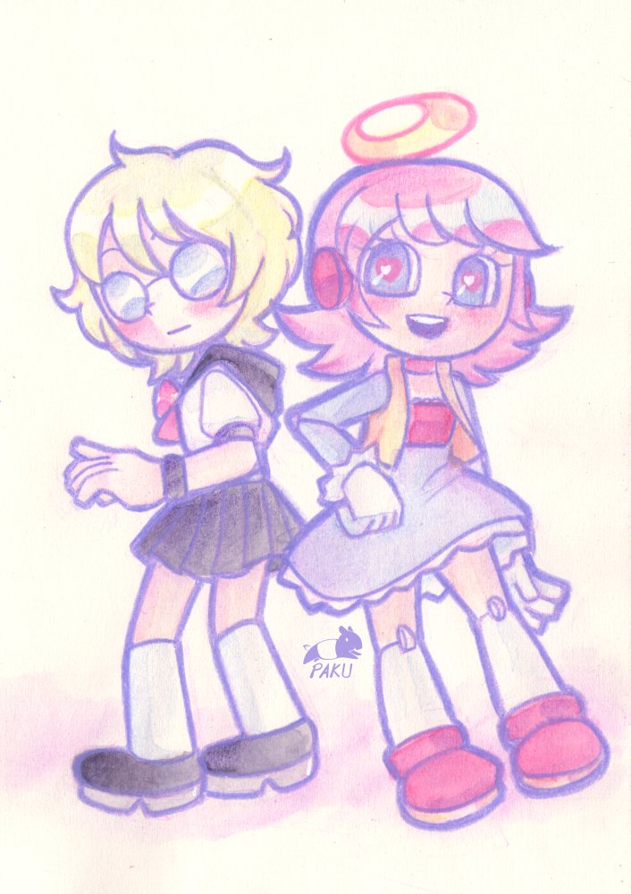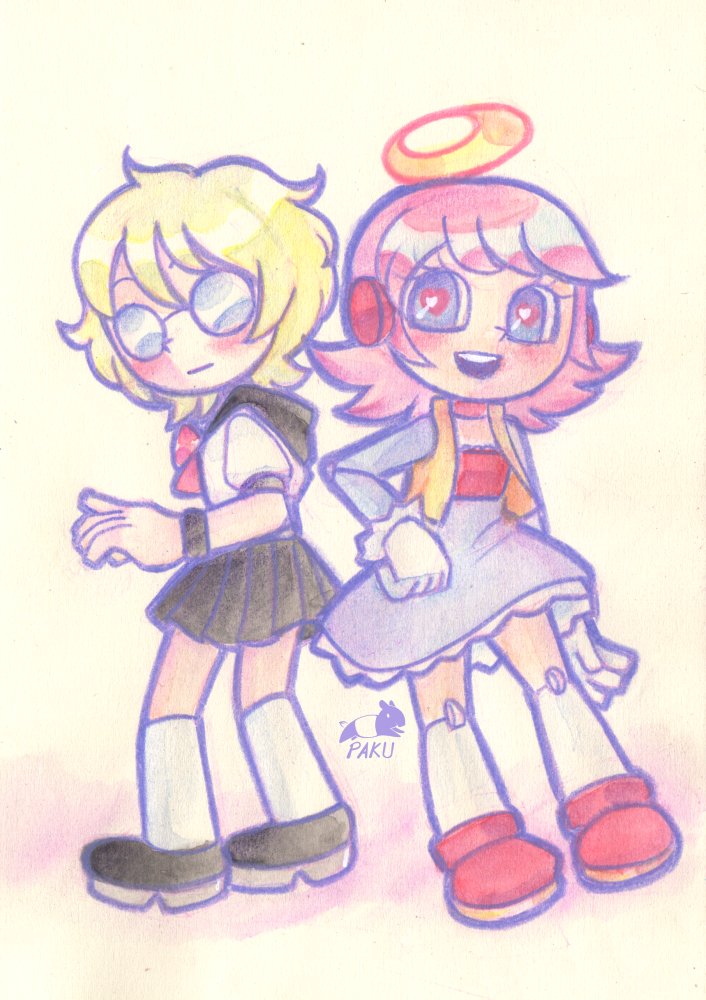 OCs (Left: Lucy (An alien in eathling cotsume) / Right: Bonne (The Robot-Doll)) #originalcharcter #OC #alien #earthling #humanoid #robot #doll #lucy #bonne #Watercolourpainting #watercolor #coloredpencil #水彩