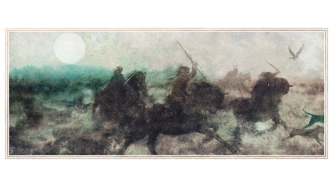 "Hunters" [2021]. Solstice greetings on this, the longest of nights on what has certainly felt like the longest of years. Wishing all of you safe passage as we ride forward into the light! x #hunters #wintersolstice #saturnalia #stagandserpent #digitalpainting