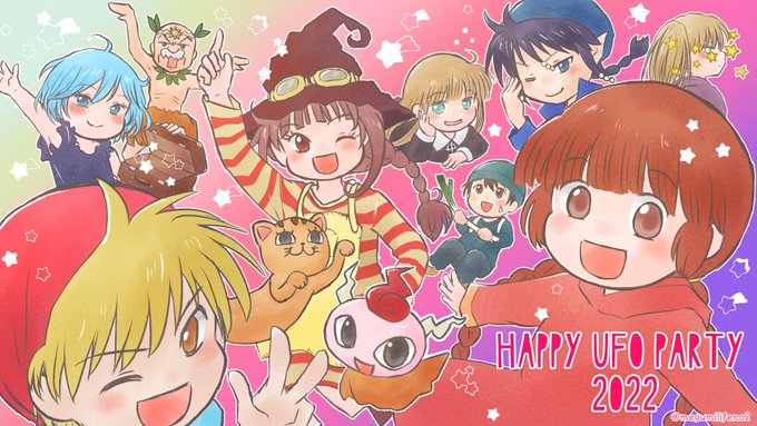 今年もイラスト描かせていただきました~。魔法陣グルグル30周年の記念も兼ねたHAPPY UFO PARTY 2022、みんなで盛り上げていきましょ~!! 🥳🪩🎶#魔法陣グルグル #hup2022 #hup2022illust